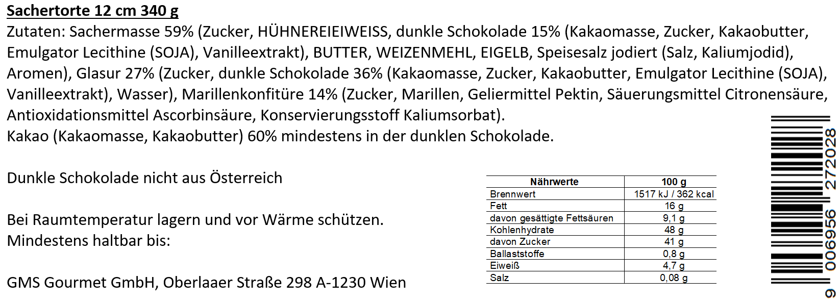 Wiens weltberühmtes Tortenrezept von Gerstner meisterhaft interpretiert und noch einmal verfeinert. Genießen Sie: Sacher Masse, Marillenkonfitüre und Sacherglasur.