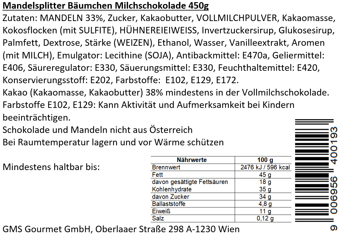 Allergens: C,F,G,H (milk chocolate) | C,F,H (dark chocolate)