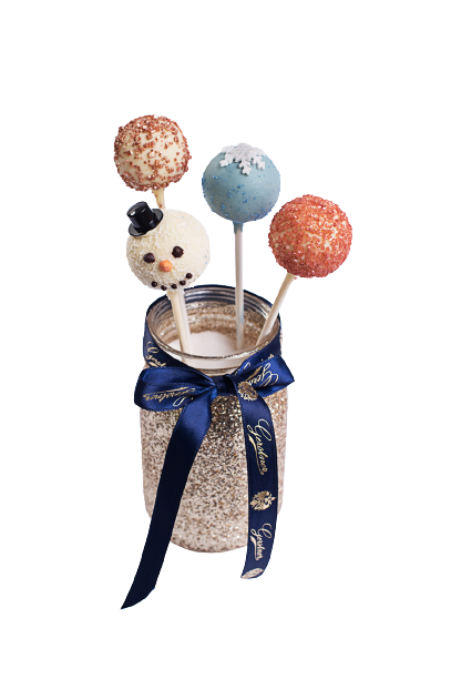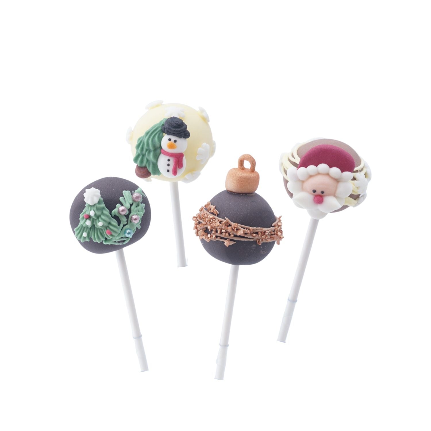 Juicy chocolate mass covered in chocolate and sugar decorations in a Christmas design. Available individually.