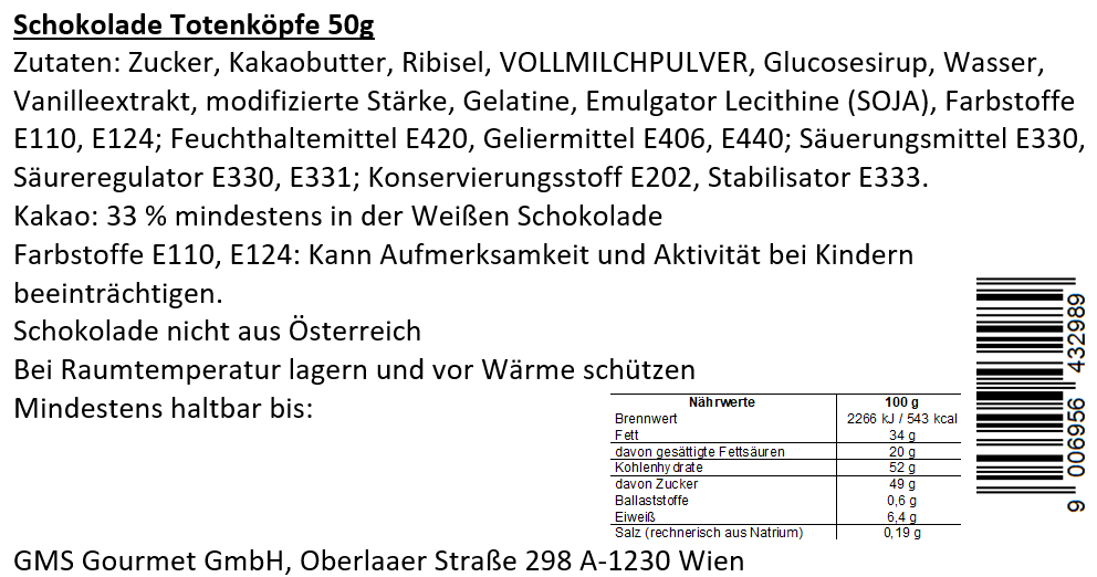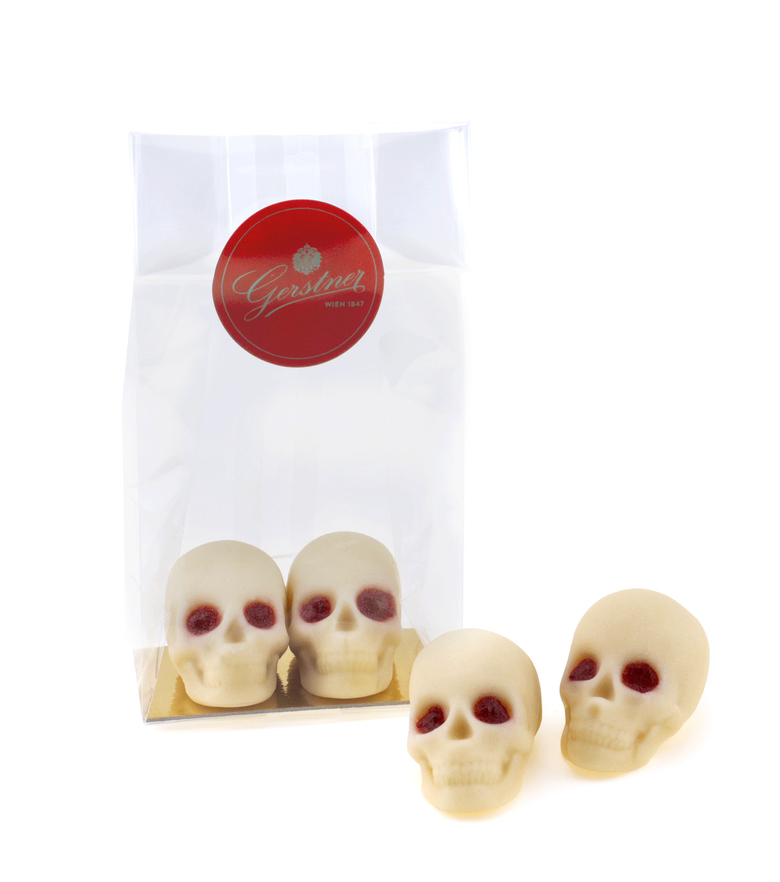 Scary sweet skulls made from white chocolate and currant jam. Available in sets of 2 each.